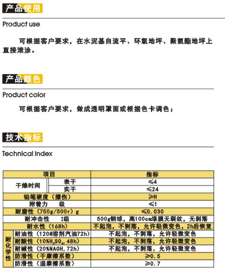 > 水性聚氨酯耐磨面涂