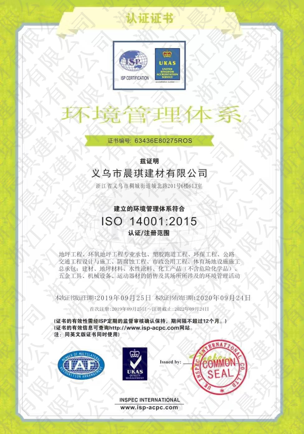 環境管理體系證書
